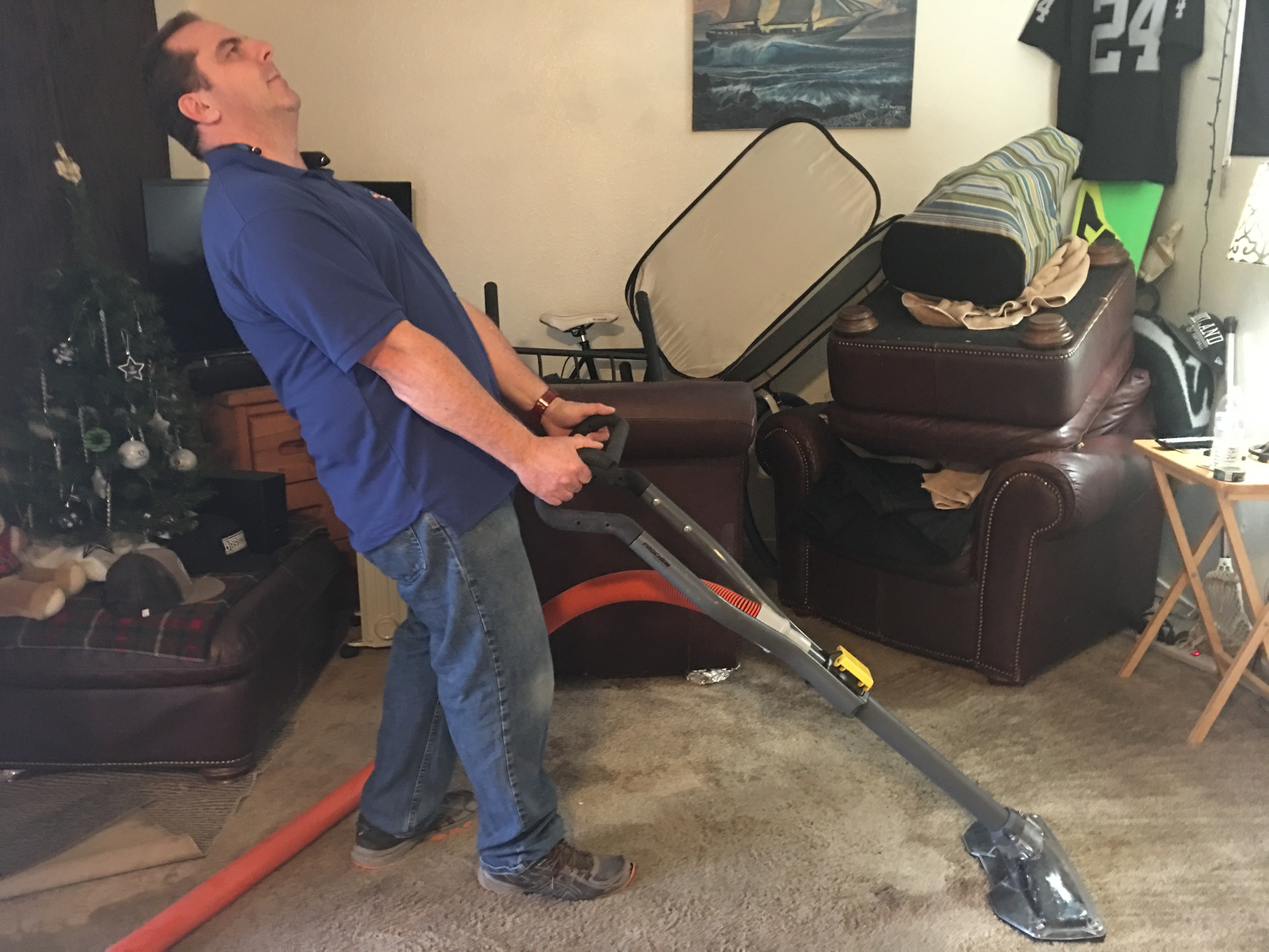 It's a phallic symbol!Why do we as carpet cleaners feel the need to stand in front of our equipment???
