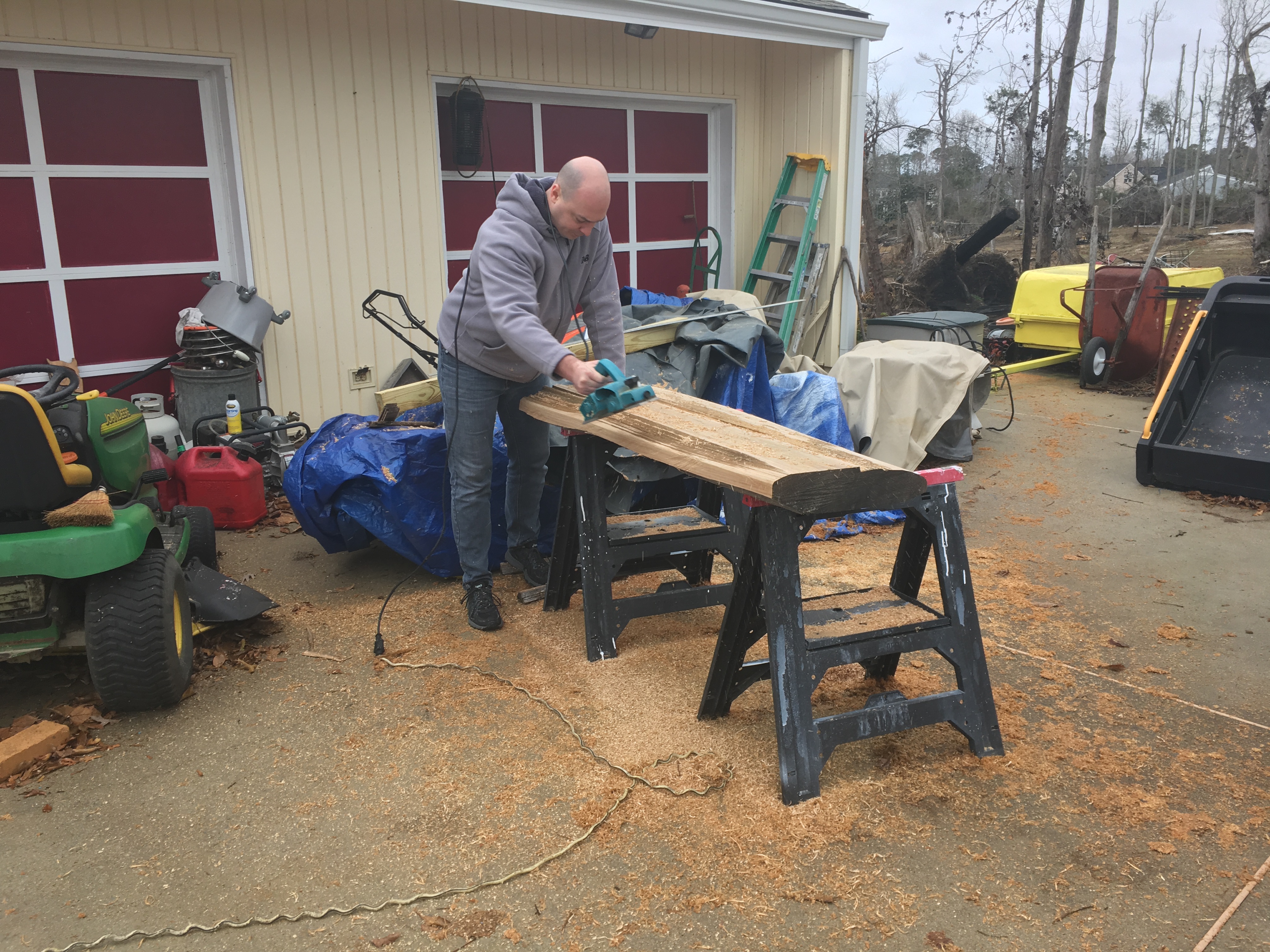 Look at all that junk!Hey Damon, wanna see an oak bench I’m working on?