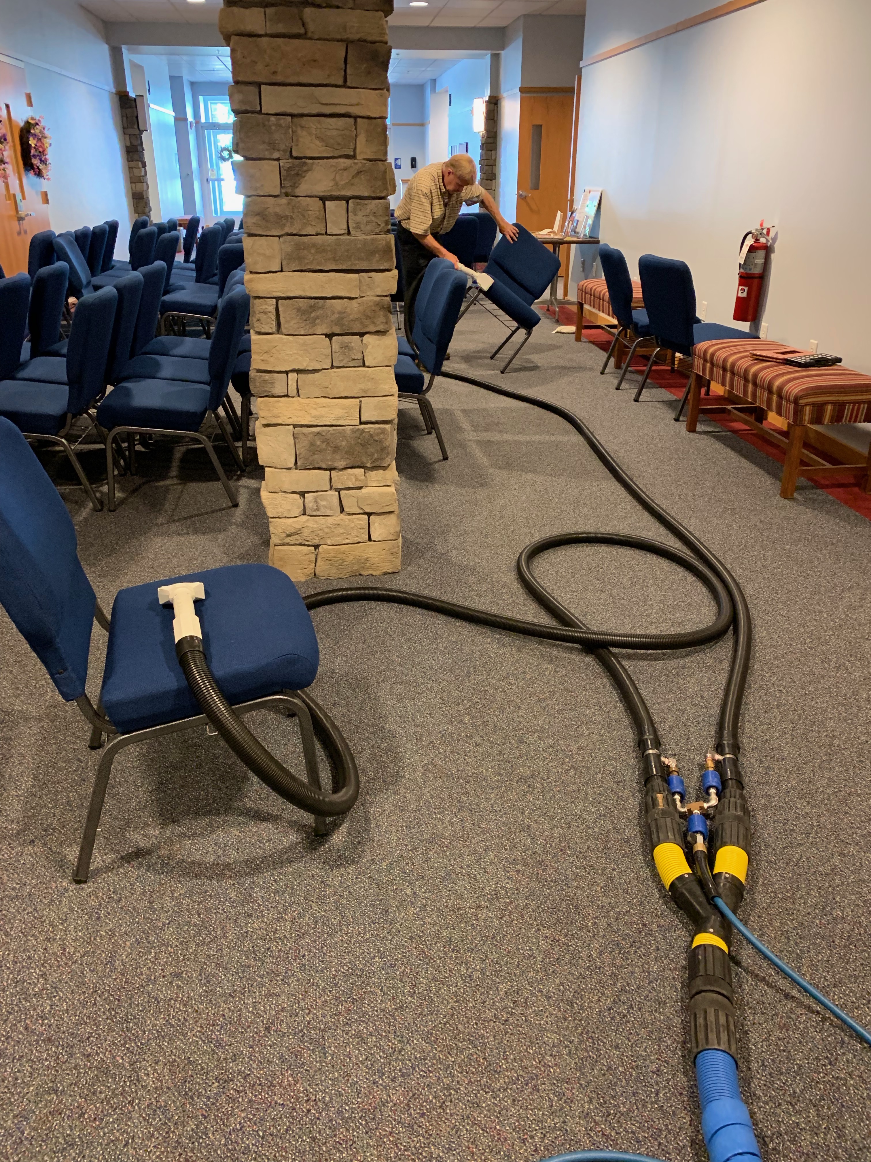 We also clean their sanctuary every Halloween at 10:00 PM, which is 14,000 square feet. We run 3 wands and 2 truckmounts.