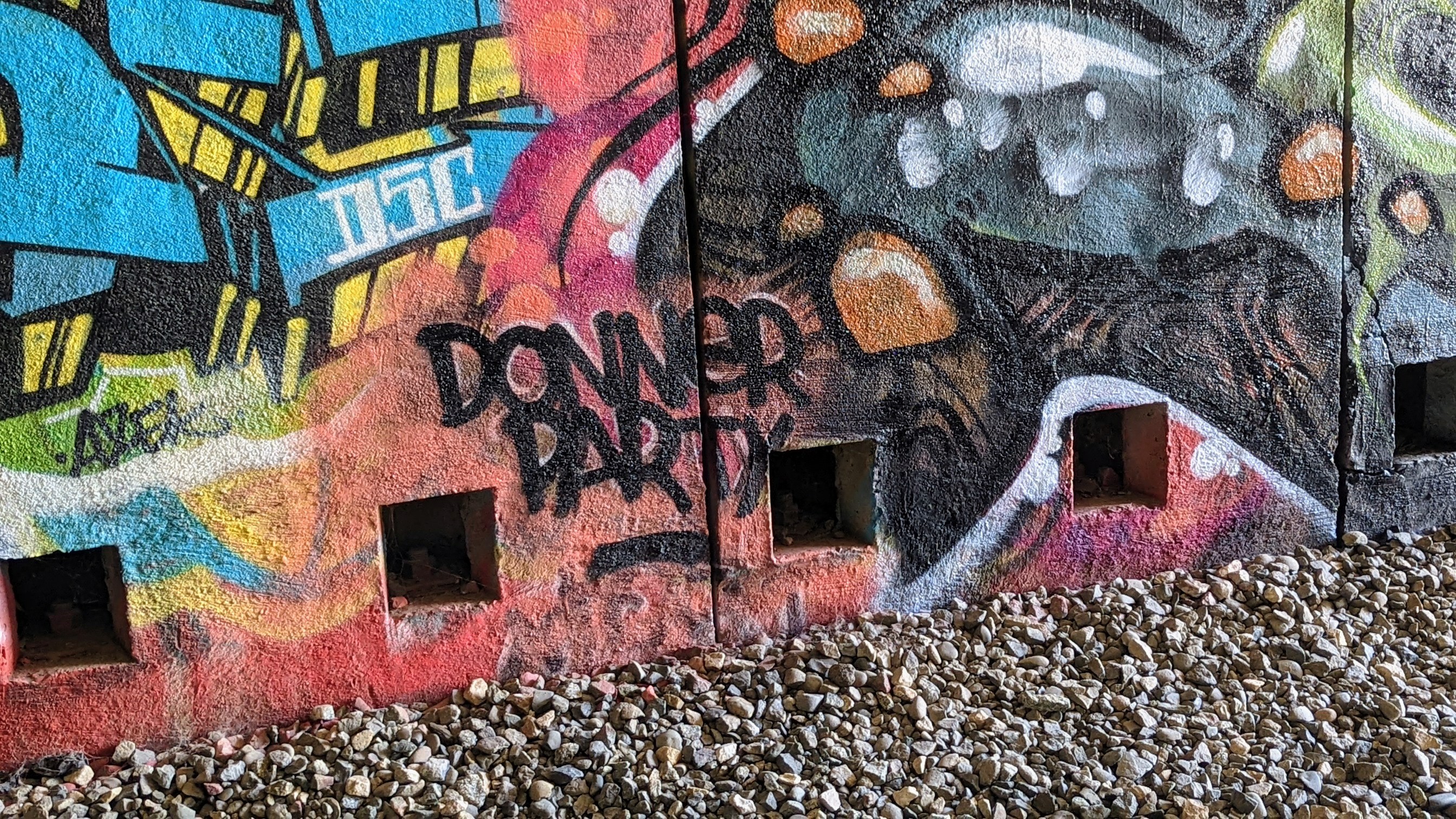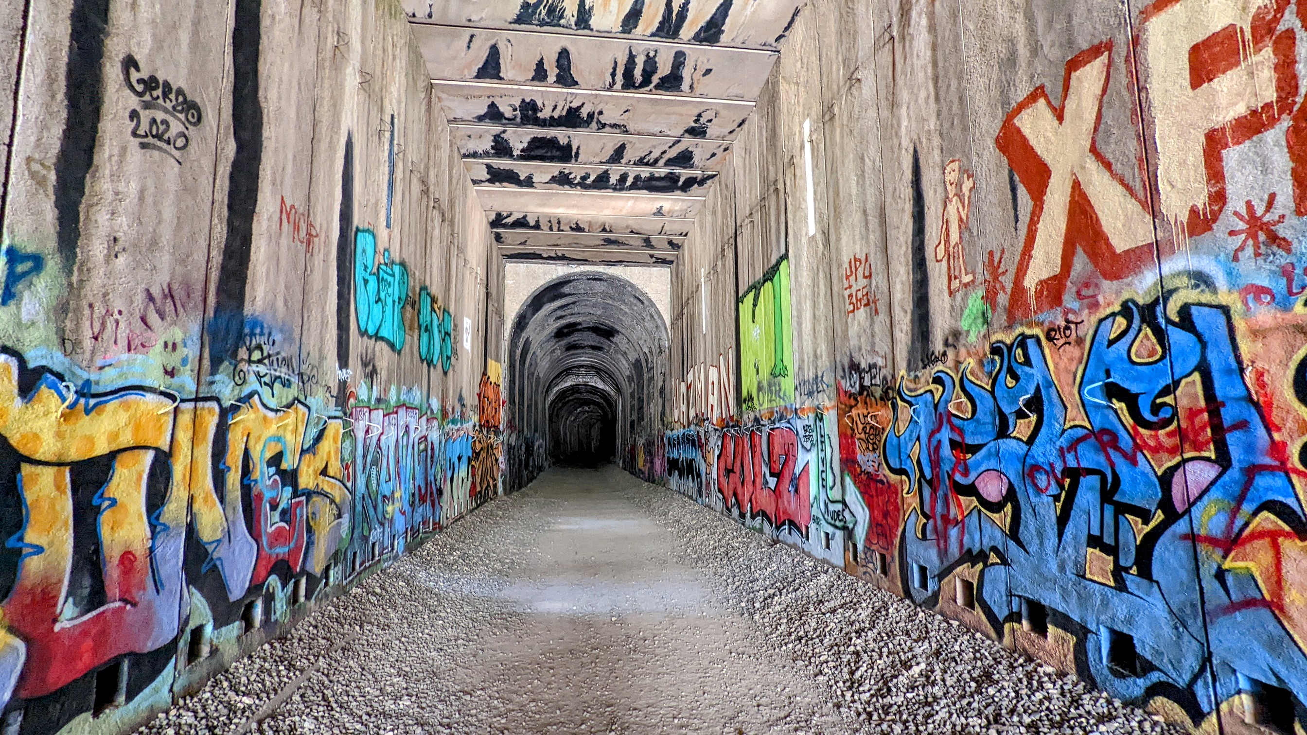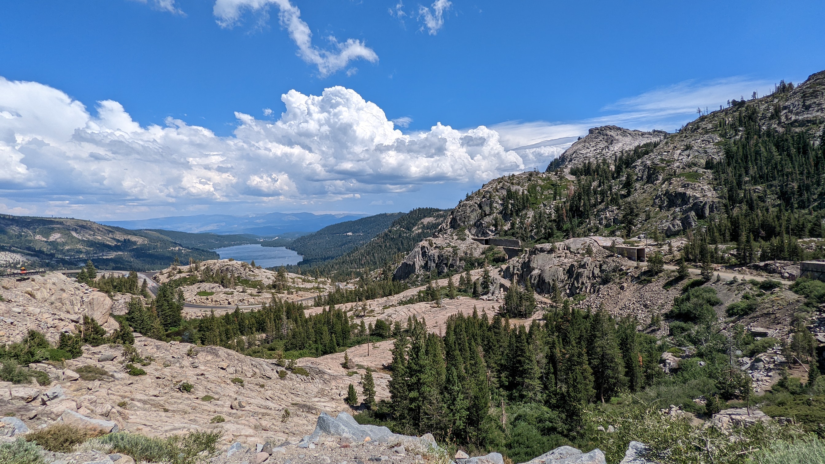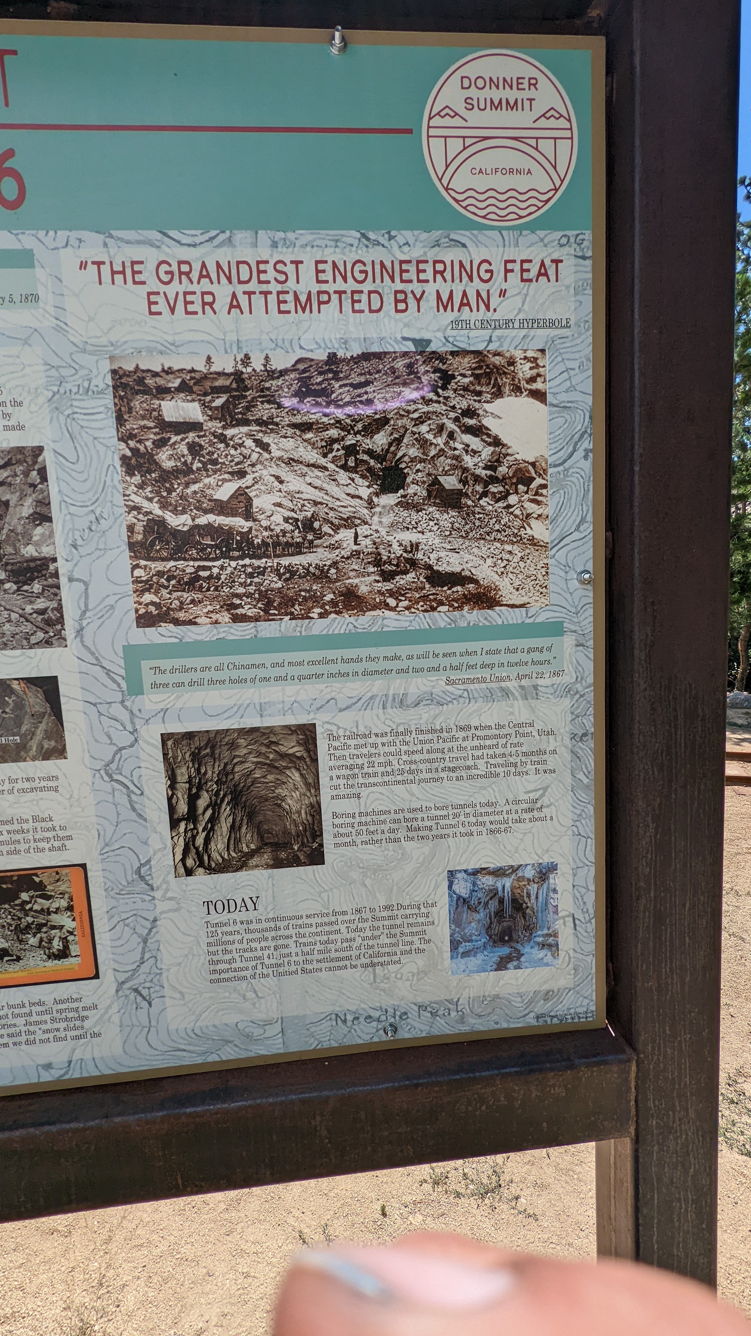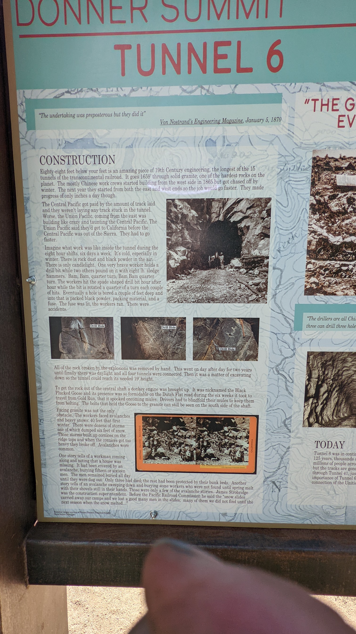 the actual trail the wagons took in the 1840s as well as through a train snow shed.
