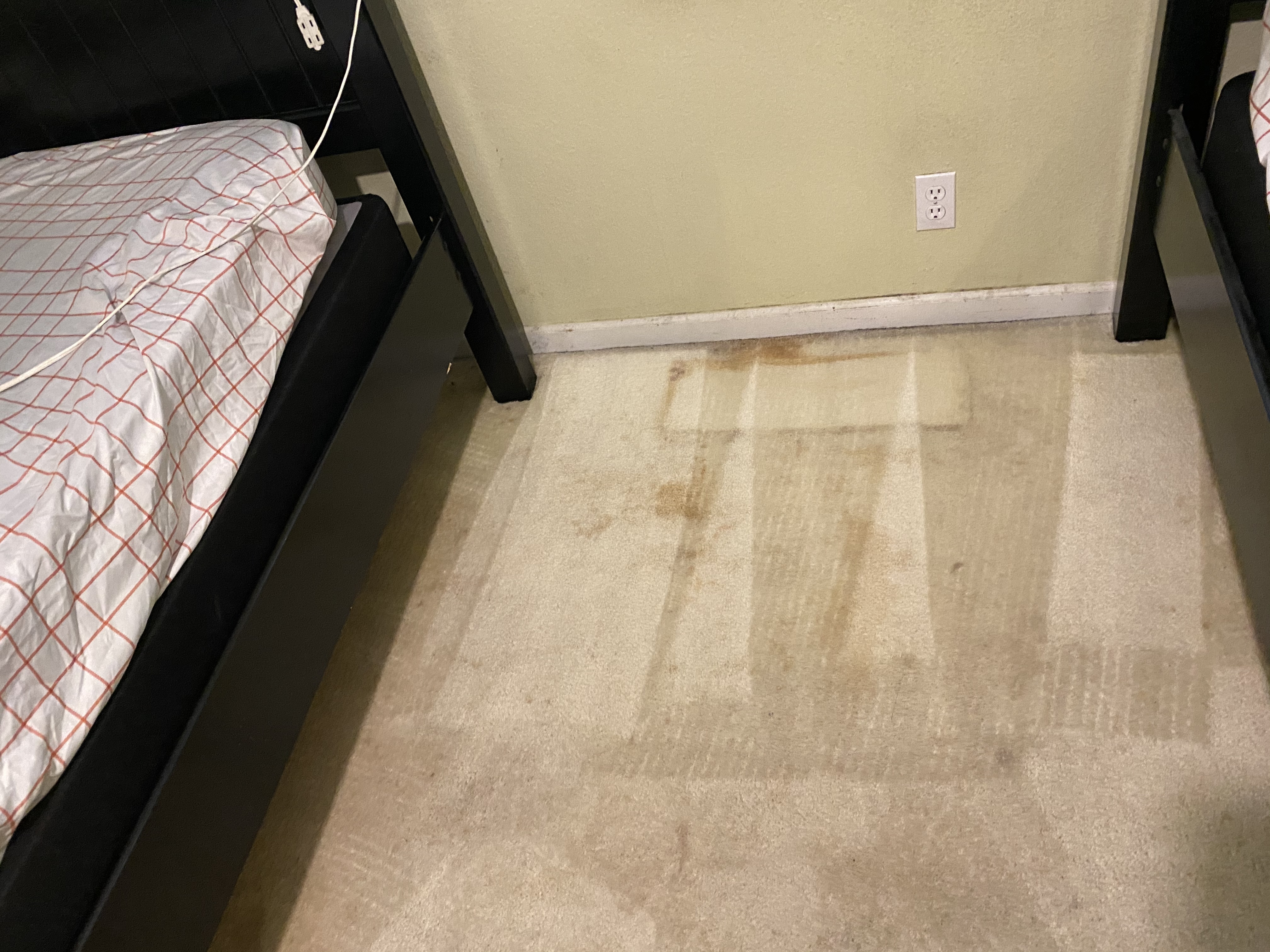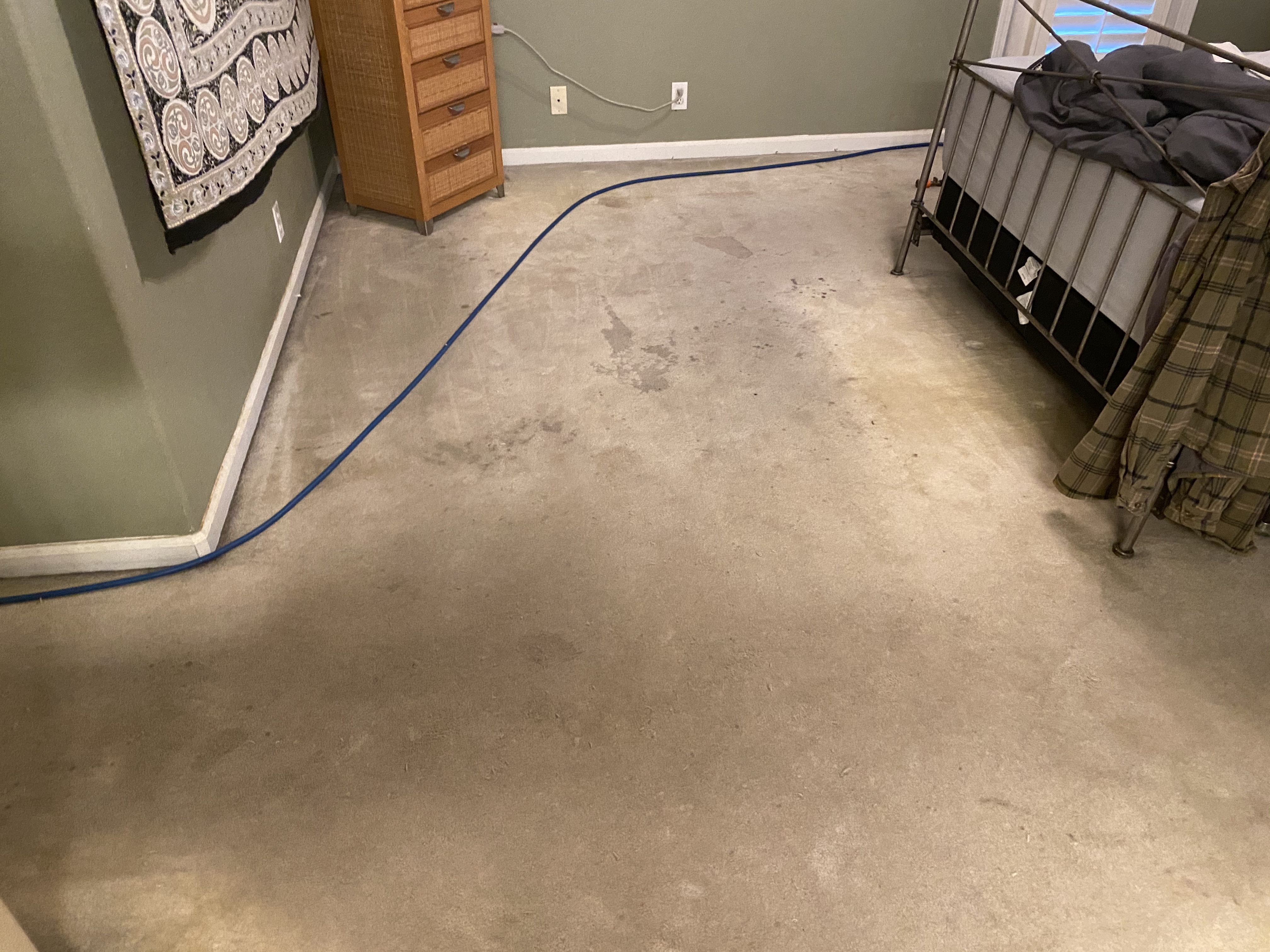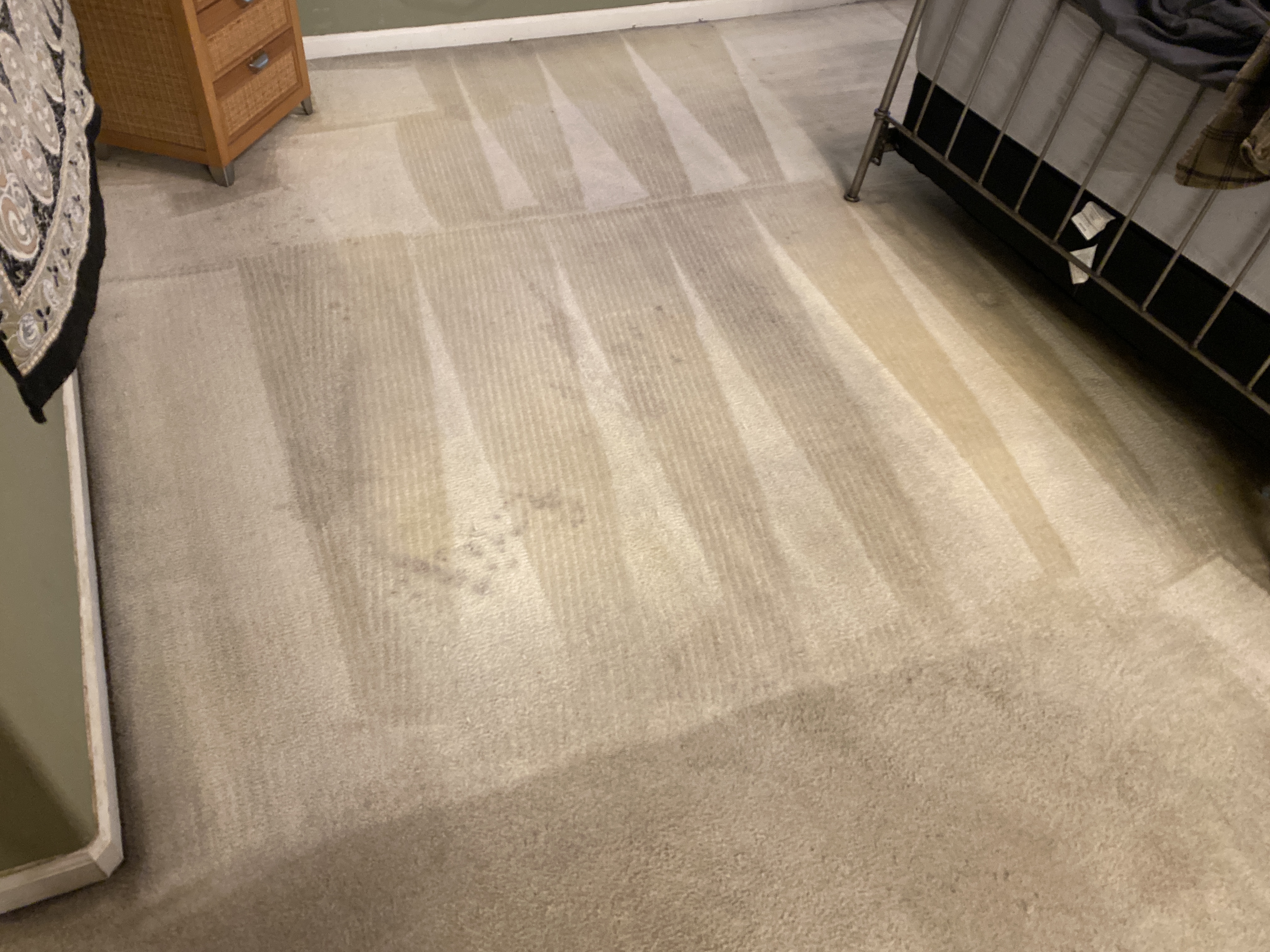 This one kicked my ass today. I ended up mixing in 10 oz of Saiger’s Tsunami and it still didn’t touch this carpet. Carpet is heavily lived on by urine producing dogs and kids that spill gatorade. The entire carpet was covered. I was so flustered cleaning this today I almost walked out. I cleaned it and left. Any stain work would have been futile. At one time this carpet was bright white poly.