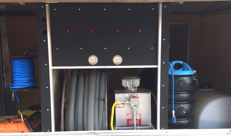 While this is a customer built prototype, it proves the performance capabilities of ETM's. It can run on a single 230 VAC cord, or generator as pictured. The owner is Mr Carpet in Denison, TX. Currently it has two 8.4" Lamb Vacs, two 6.6" LX vacs & Little Giant heater. We demoed this ETM in our showroom yesterday with the owner & several TM customers with a 14" wand. Consensus was the same . . . It performed as well as their #4 blower TM taking out some black stains. We also did testing with our digital lift gauge at the wand while cleaning, which confirmed the performance.