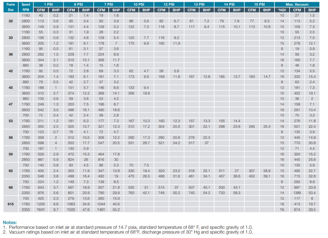 Roots 45 DSL up to 14" (the jump to 15" in the above chart may be misleading as to what is needed at the more standard 14")
