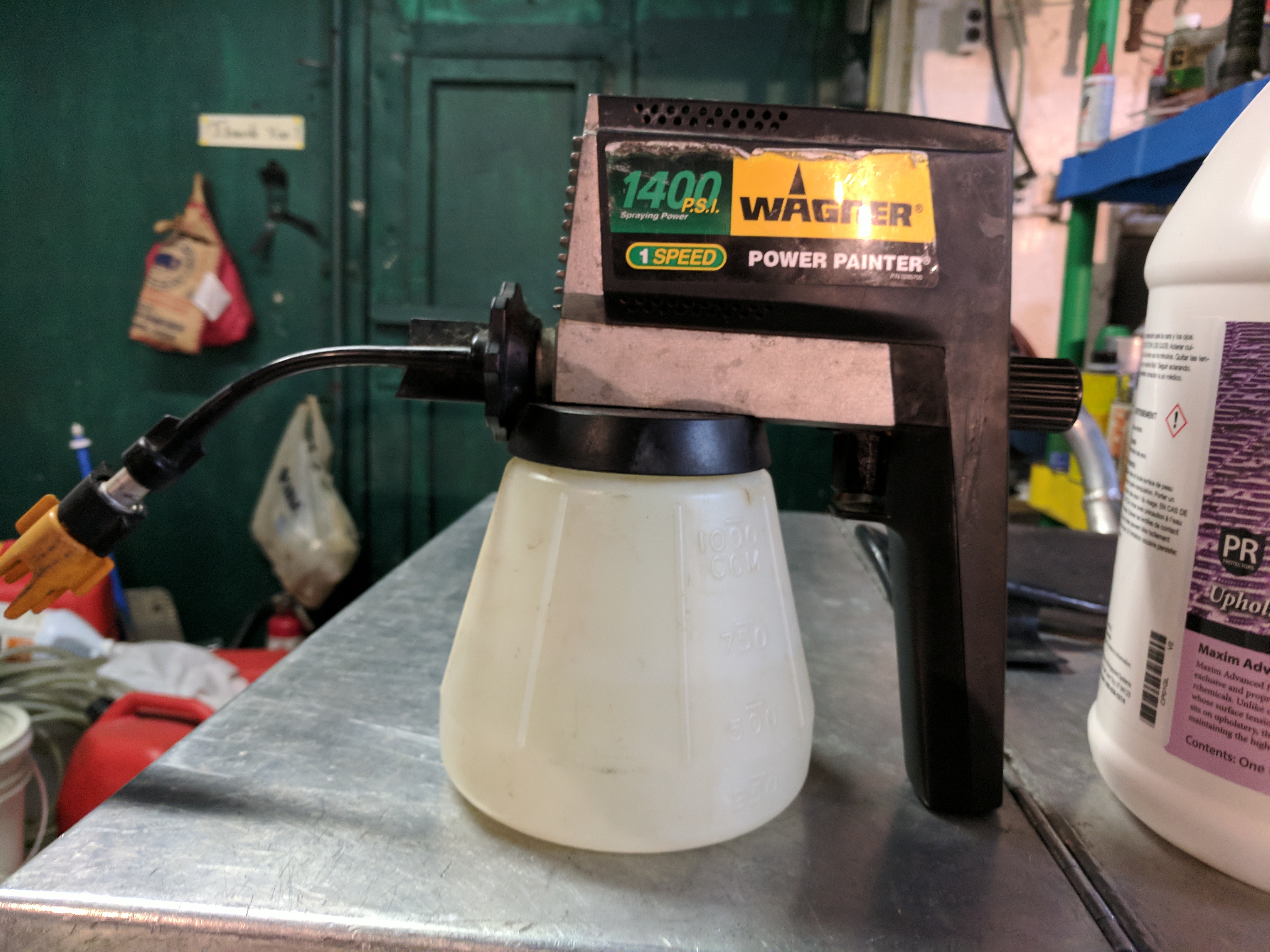 Here it is. Probably same as what you had. To avoid clogging, rinse after use. After water based product, just blow some water through it. For solvent based products, blow some oms through it. This one is at least 5 years old, still works great. You can buy different tips for it.View attachment 77084