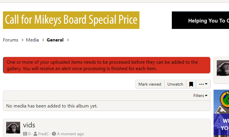 Because he is uploading them to the board (instead of youtube) which isn’t designed to serve videos