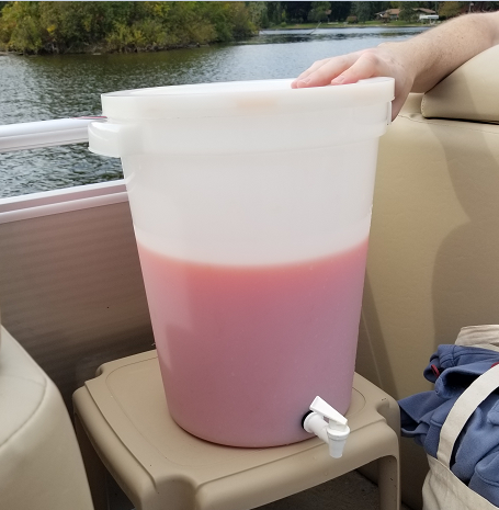 Hurricanes Mike!! We host a Hurricane party on our lake every summer and this year it was on the exact date that Hurricane Hanna became a hurricane. This container was full when we started and we emptied it. That's all drink, we keep ice in a separate cooler.