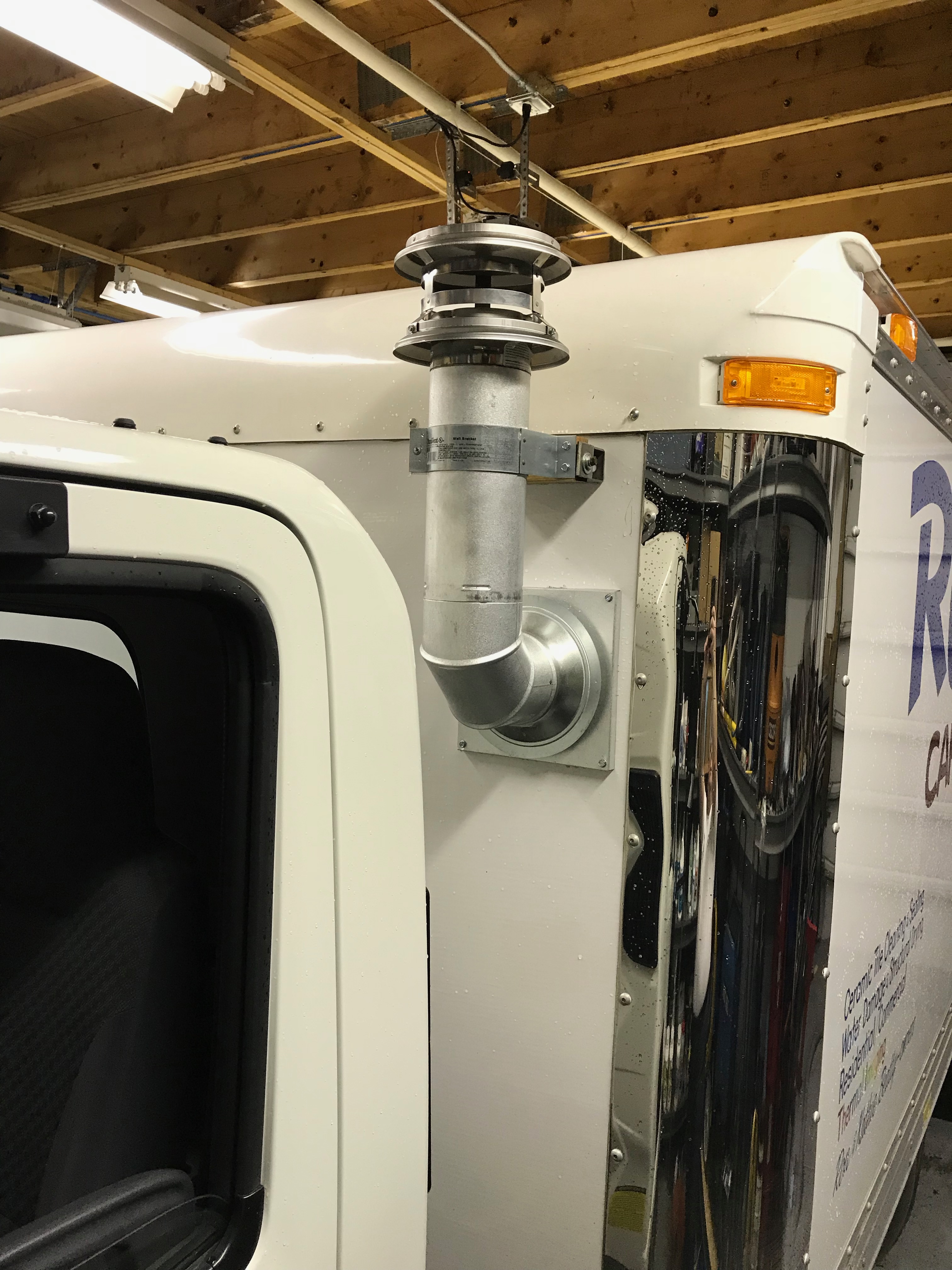 There is nothing on the truckmount blocking airflow to capture heat from here and there like HE capture, so the vacuum system is free flowing from the blower discharge side.