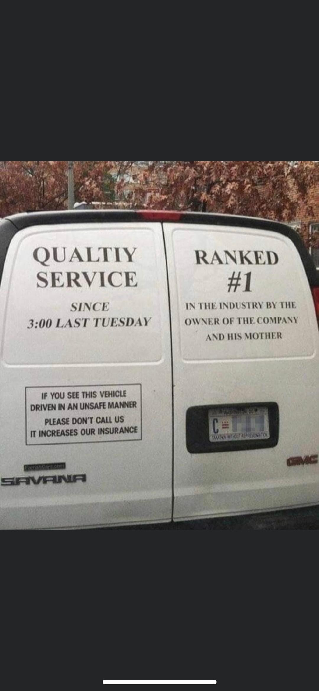 what does it say from the outside?The FUV has “STAY CALM” in six inch green letters across the back windows.
