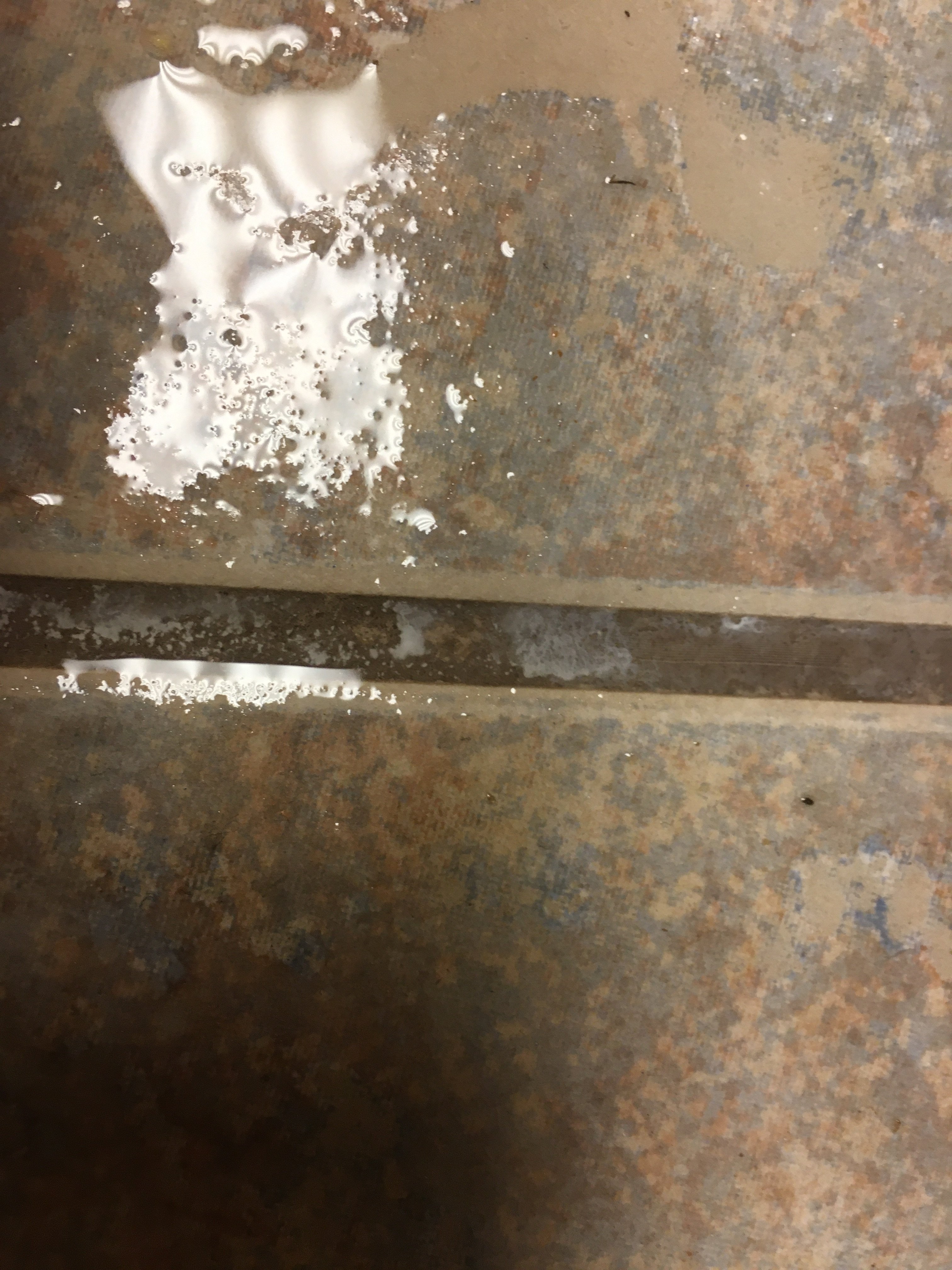 Grout is porous, so stains can be acid etched or wire brushes etch too.