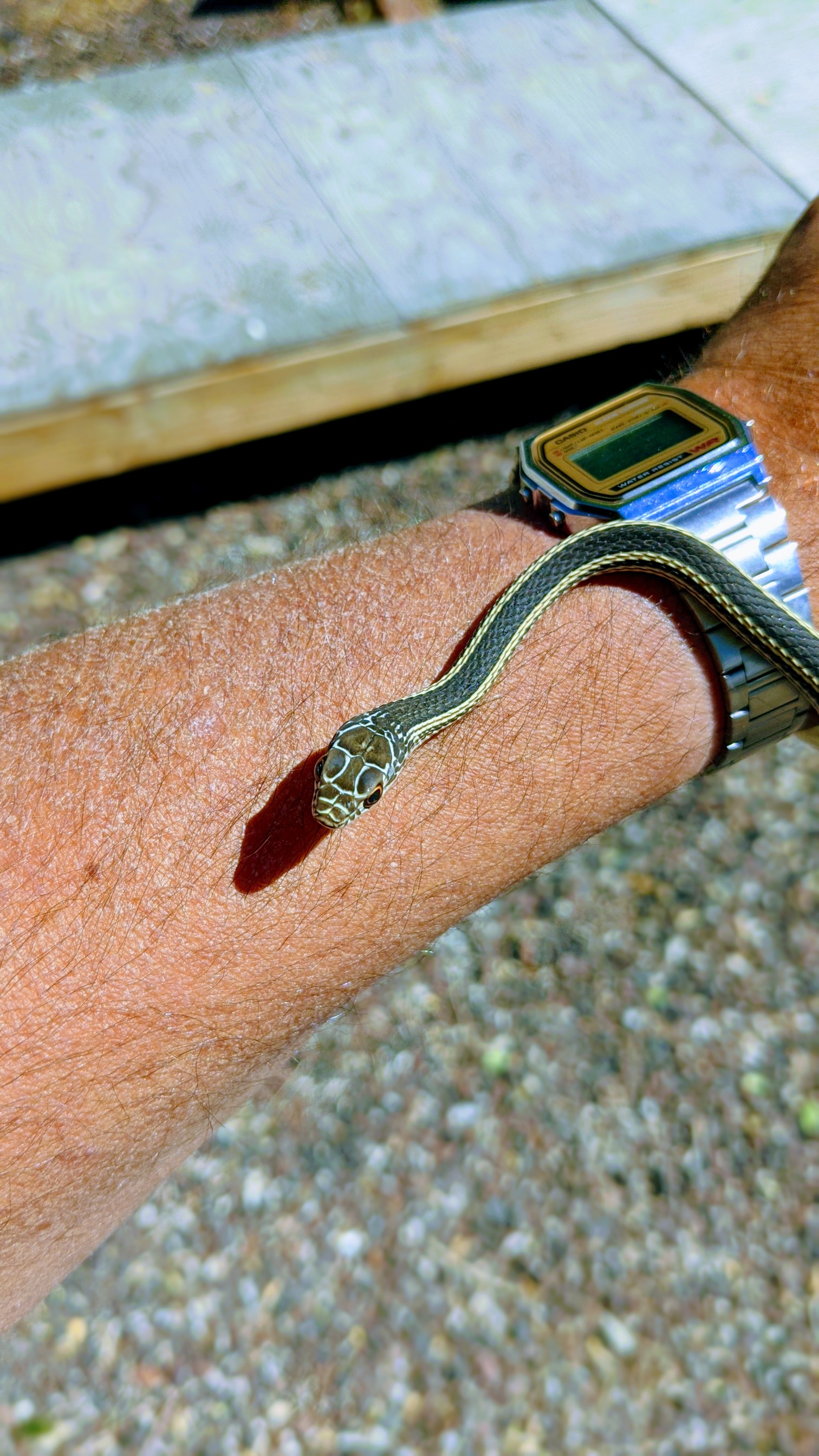 This little striped whipper was bailing out of the hills looking for safe refugee when he stopped to ask me what time it was..