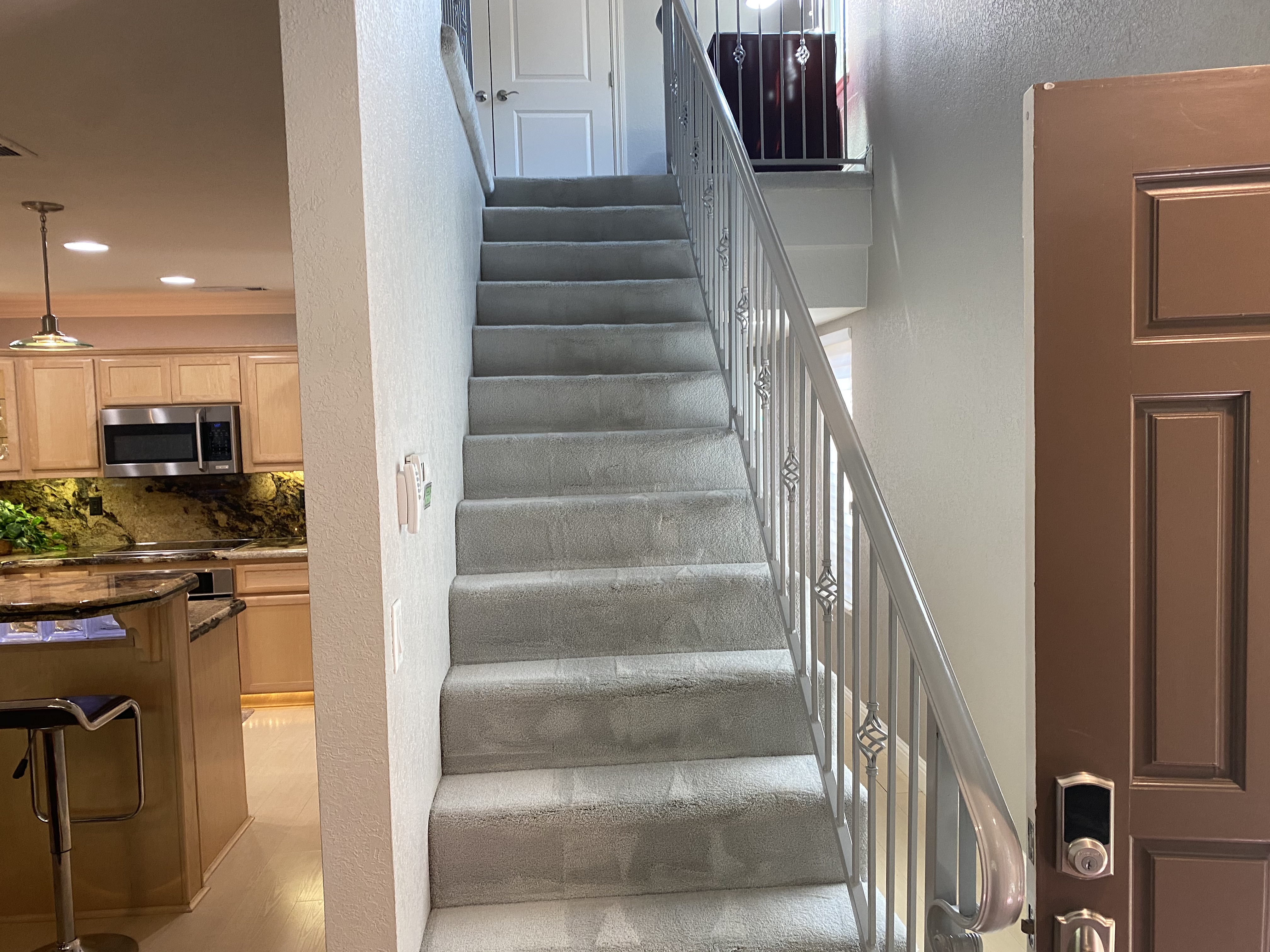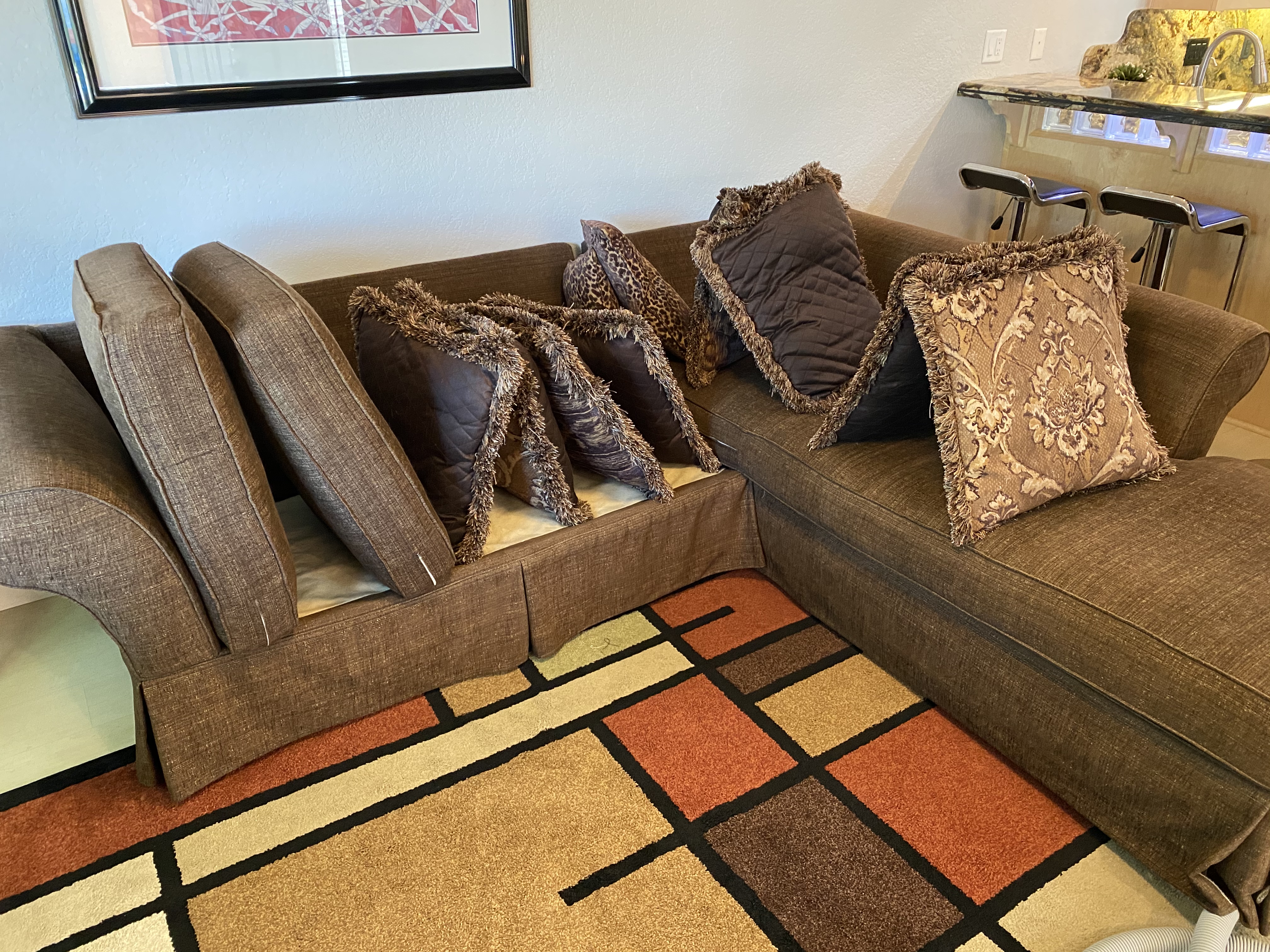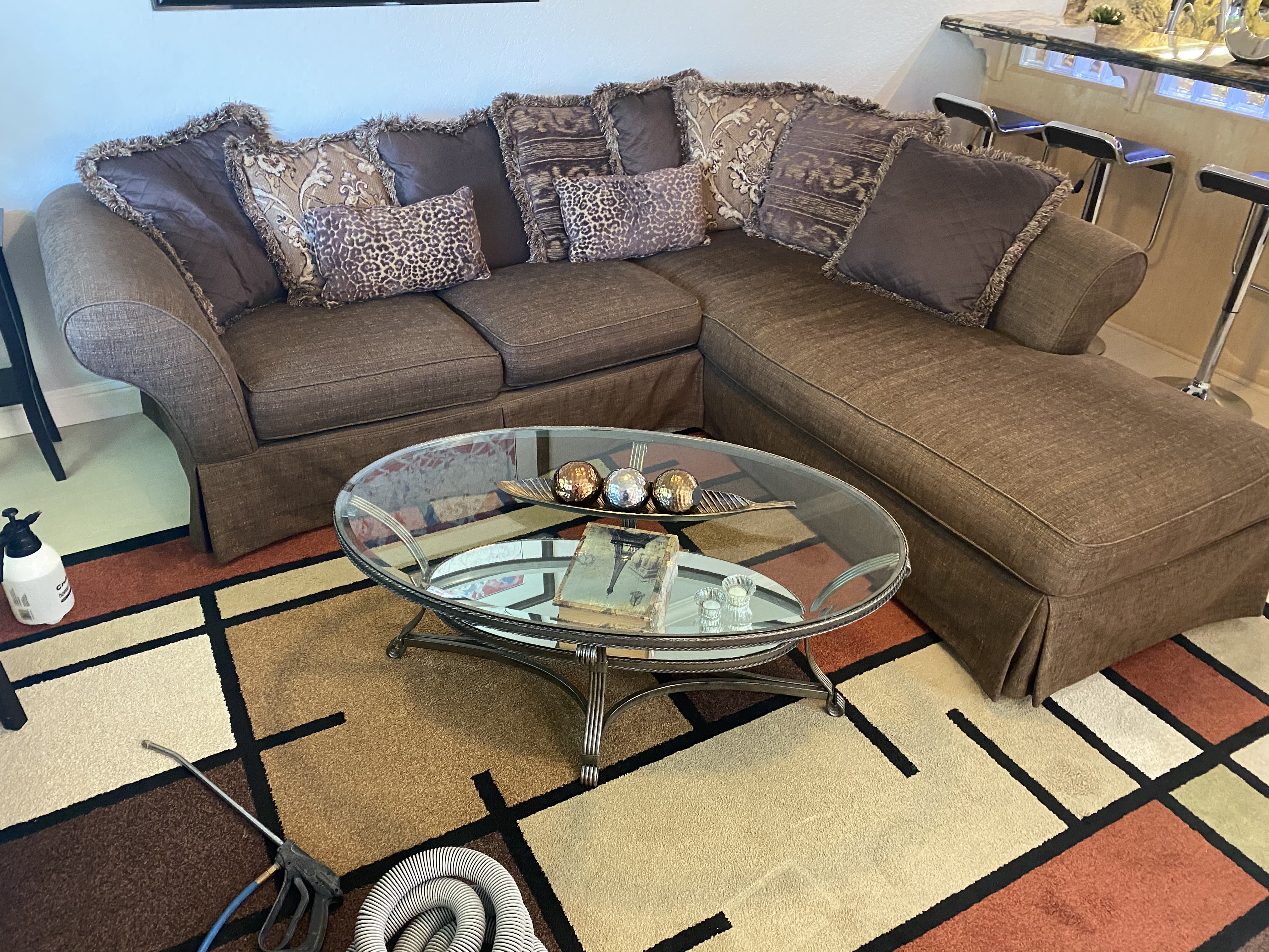 I continued working, cleaning the townhouse, stairs, and 14 cushion sectional with fringe pillows.