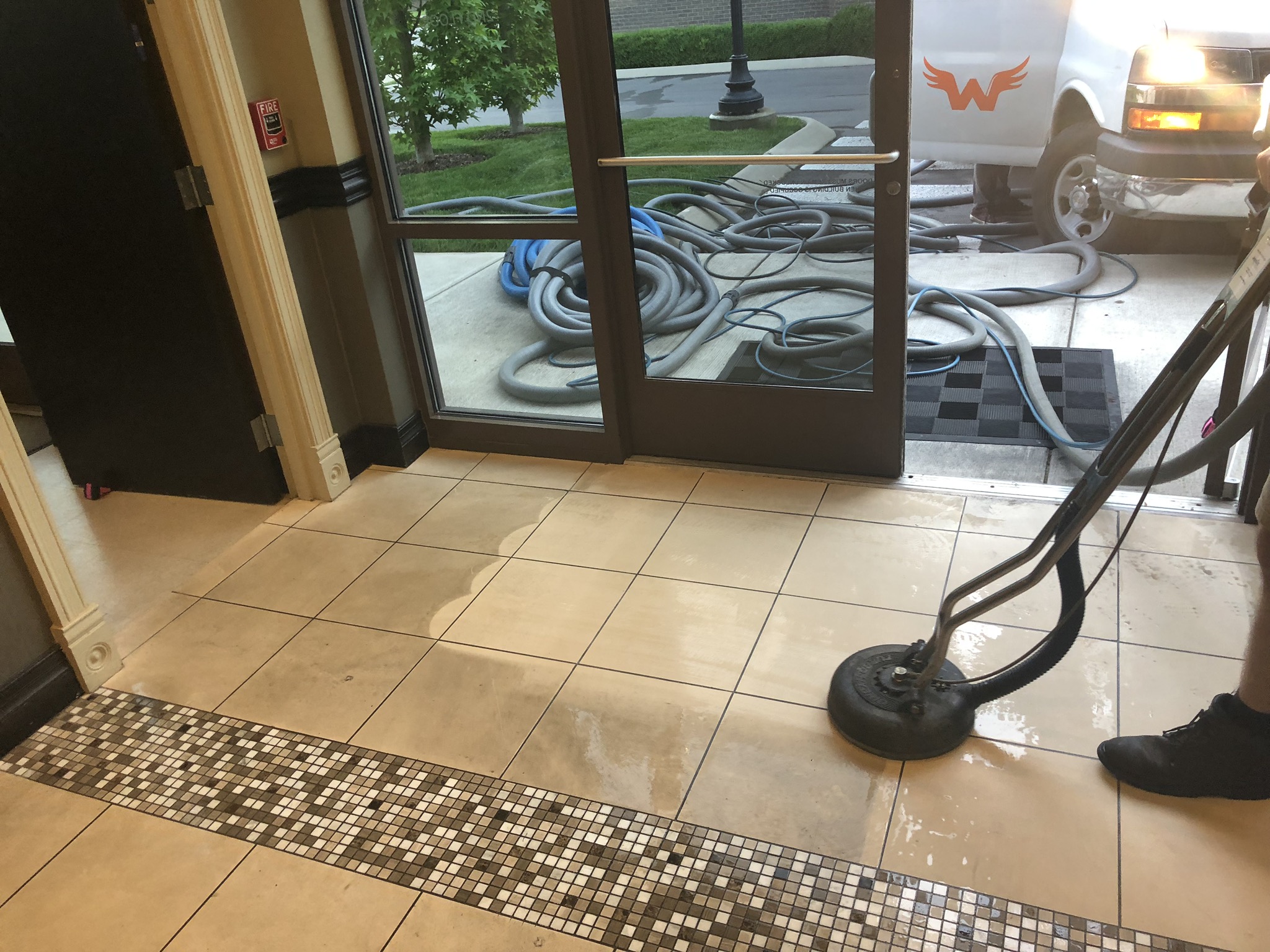 We cleaned a travertine/limestone floor and left turbo hybrid rings in some areas like corners. I went back over with tile brushes on a crb to no avail. I have a cimex and both beige and gray pads. Is that too aggressive for travertine/limestone tile?