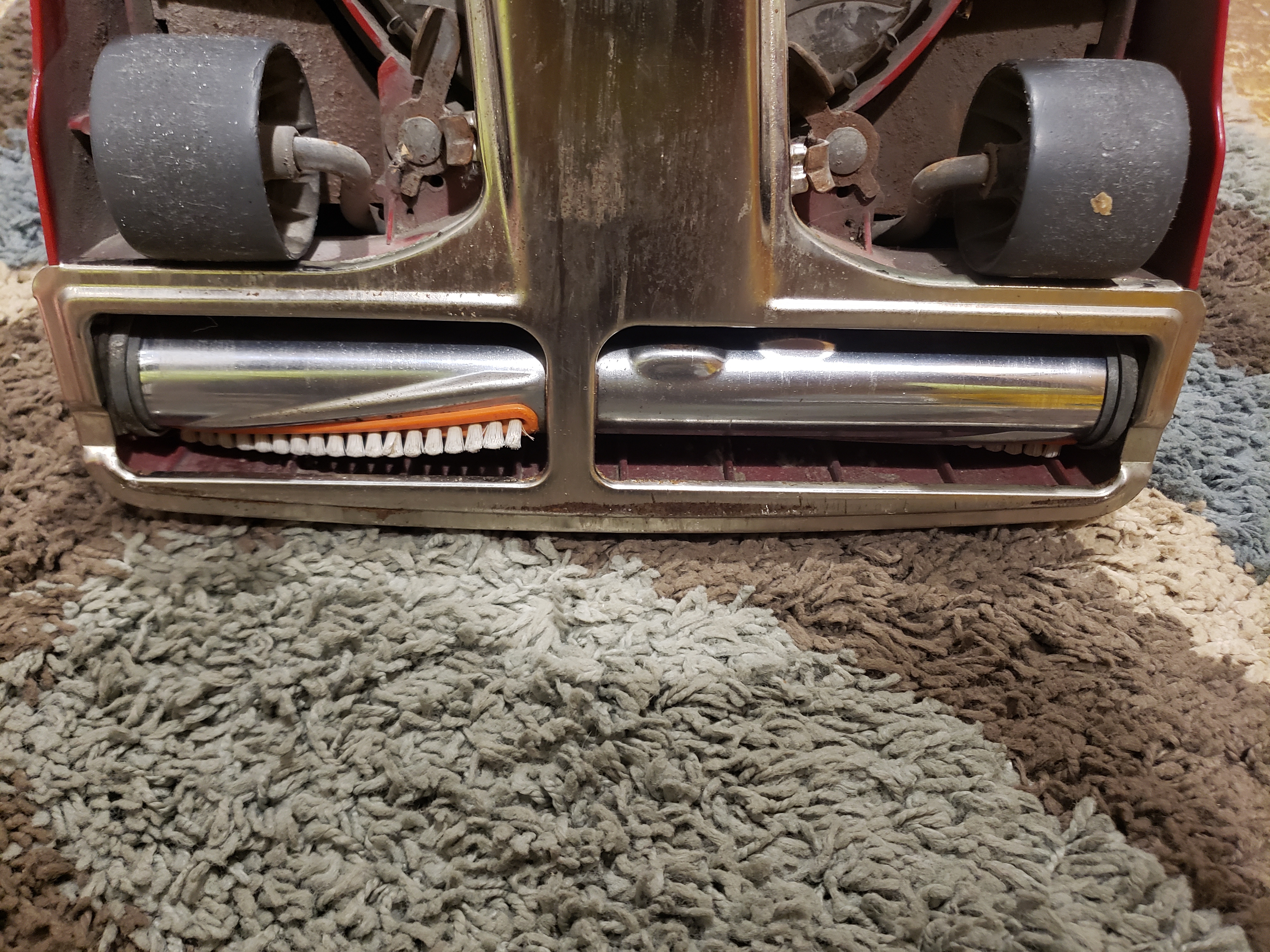 And I don't have the new tech vac (forget the name) that solves this issue. Man, we used to get a lot of hair build-up on our Kirbys but our newer Sanitaire must break the hair up and swallow it because I never have had to take a knife to the roller and remove the hair like we did so often on our Kirbys. I just looked and there are maybe 3 hairs visible on the roller--not 200 wound around that roller like the old days.