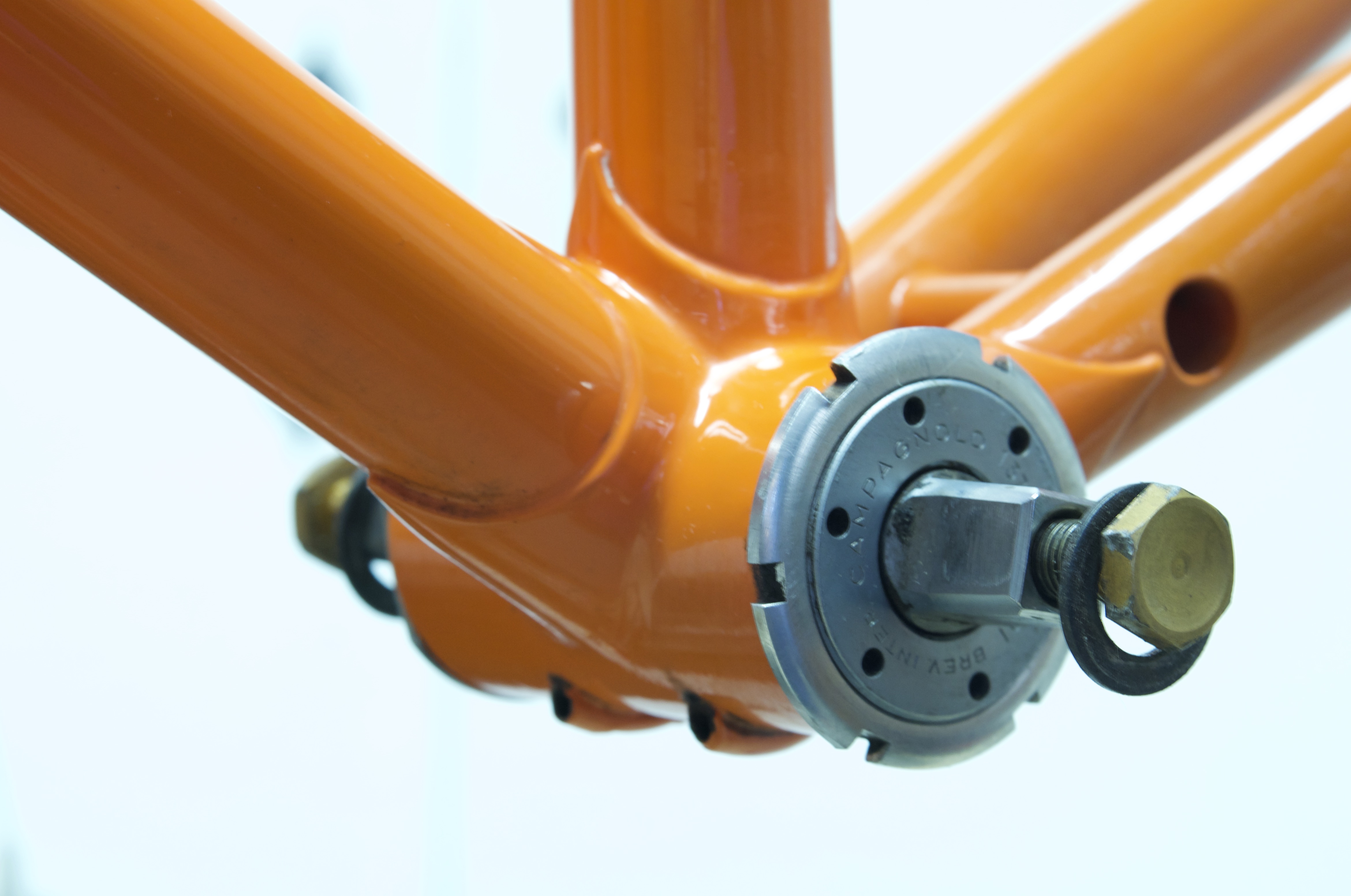 I LOVE the old Molteni Orange race bikes. The bike I'm working on was a custom built frame with a custom paint job that fades from cherry red to Molteni Orange, to yellow at the rear.